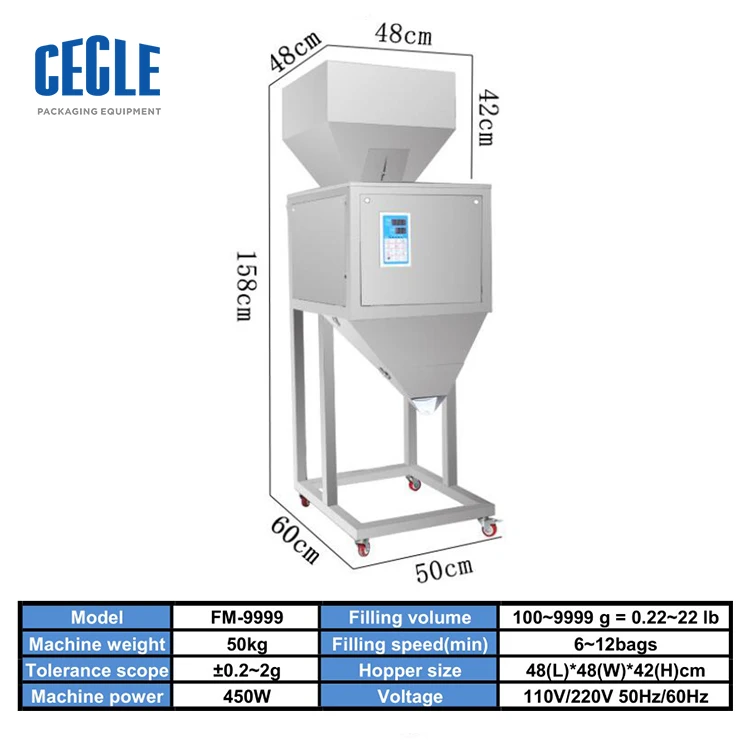 Home > Packaging & Printing > Packing Machinery > Multi-Function Packing Machine > 10~9999g Automatic Quantitative Weighing Filling Packing Machine for Coffee Beans/nuts/hardware/powder/cereals