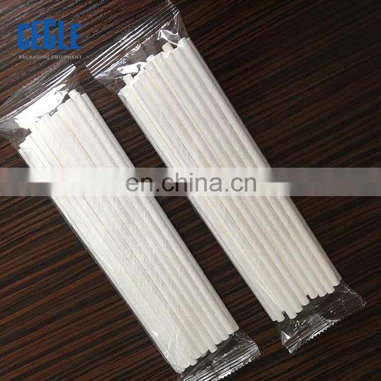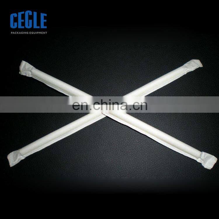 The fully automatic high speed single film/paper packaging machine is a device for automatically packaging beverage straws into bags.