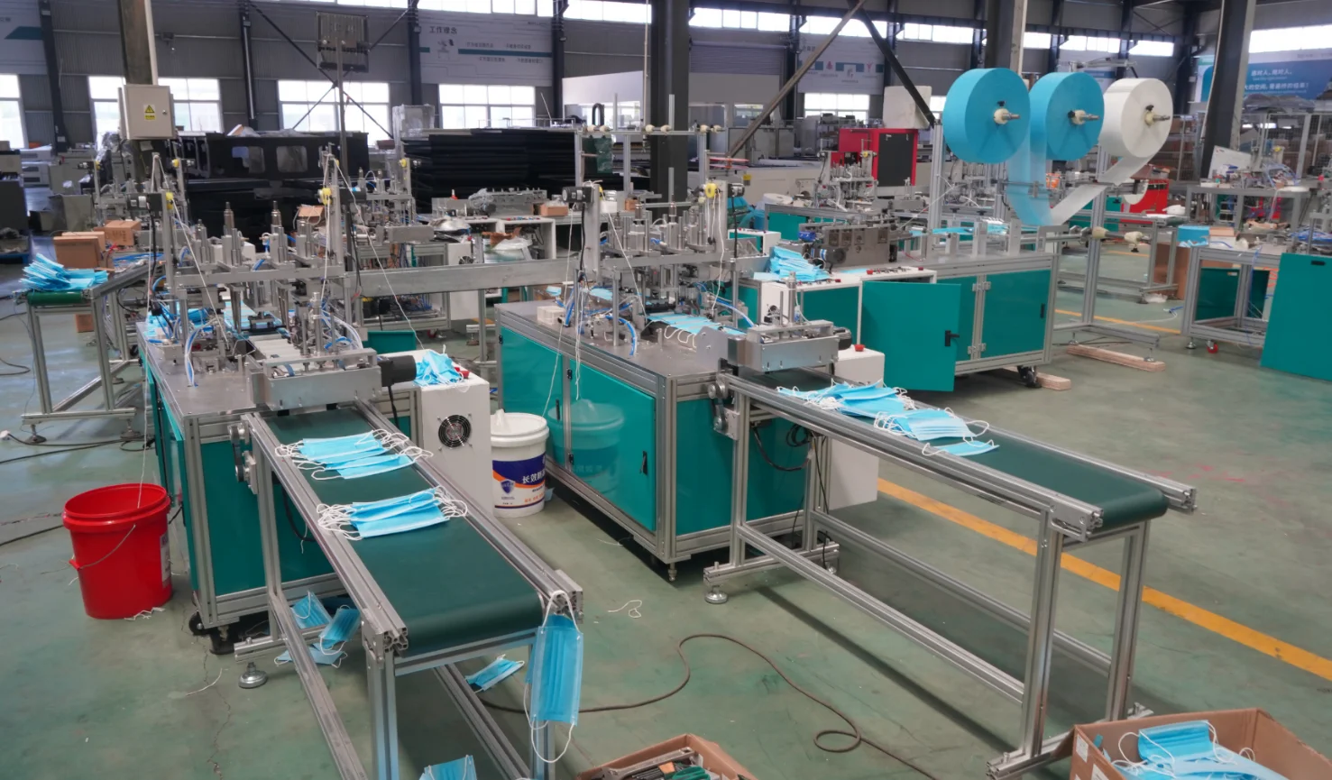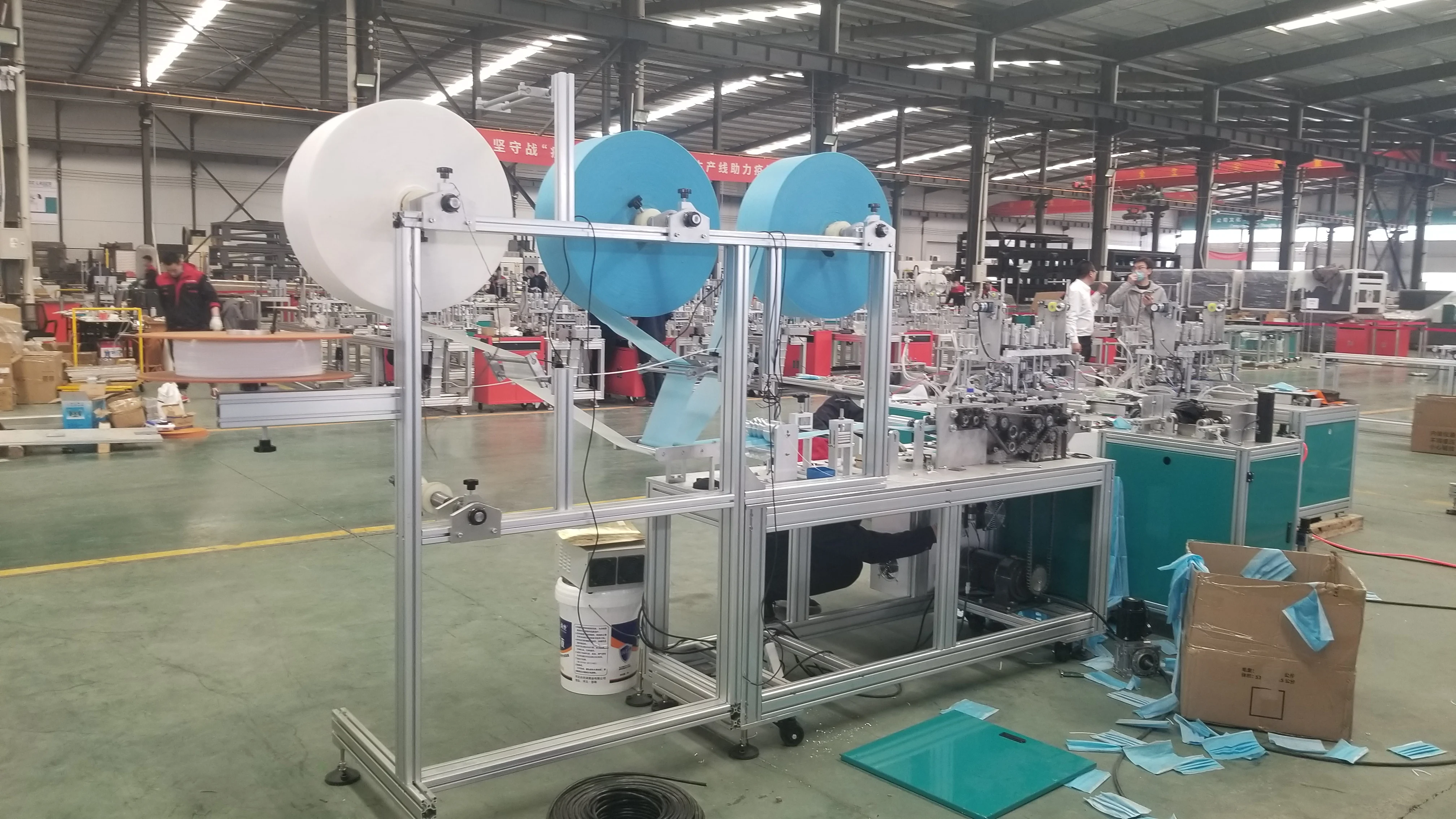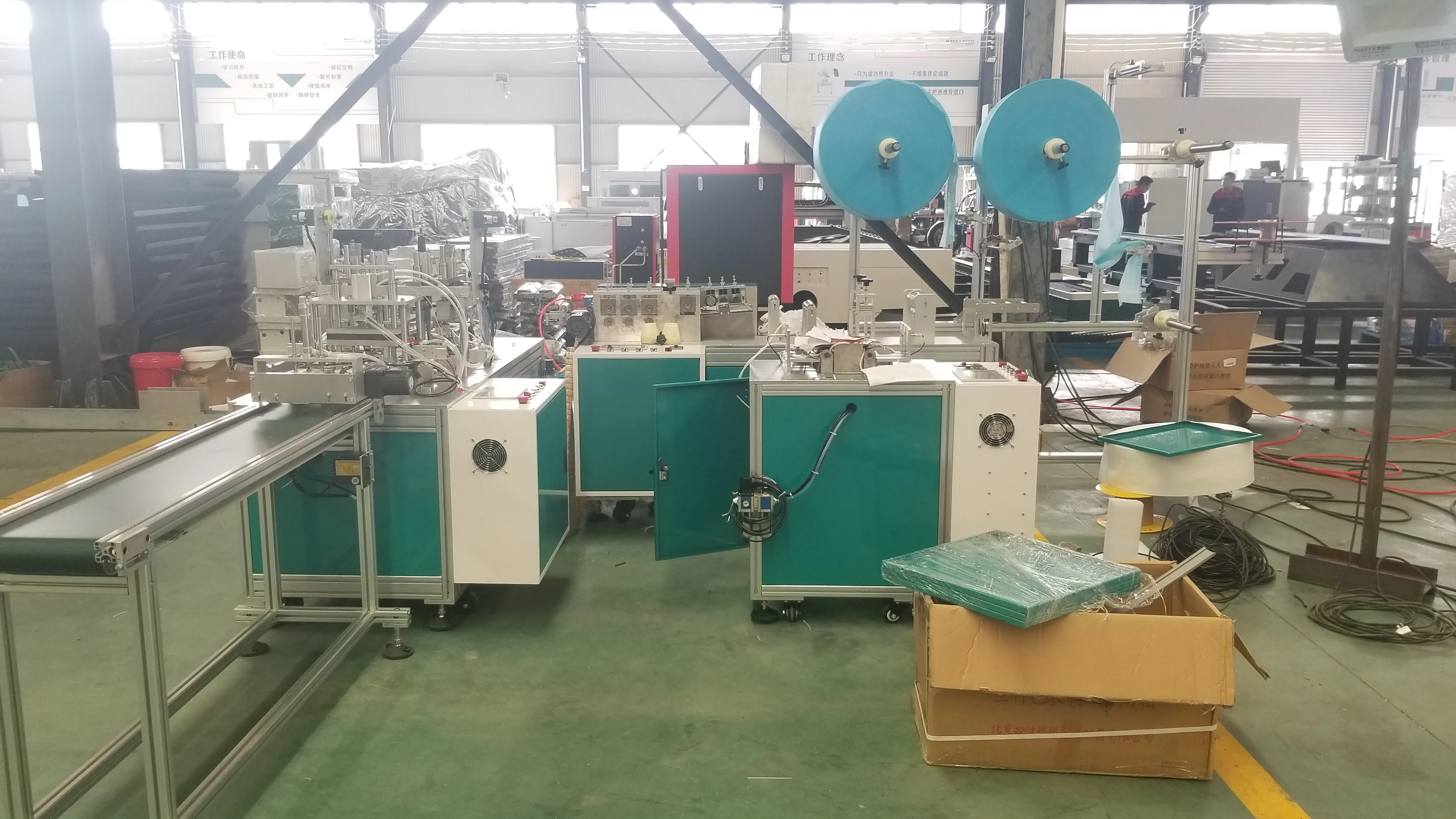 Shandong Ouyade Machinery has developed the efficient and fully automatic mask production line, which can automatically complete multiple loading and unloading and testing processes, including manual loading rolls, automatic feeding, cutting nose line, ultrasonic welding body piece, cutting body piece, material distribution, and ultrasonic welding ear line , Cutting the ear line, automatic cutting, belt line output and other processes.