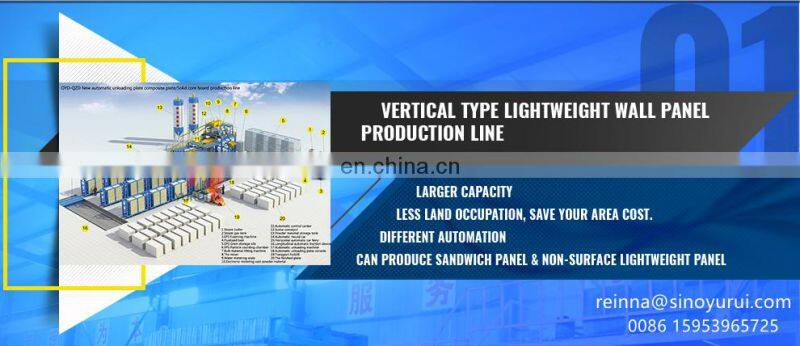 This is our vertical type eps cement sandwich panel production line, have 3different types, can produce both lightweight sandwich panel and solid panel, different automatic degree, and different investment cost.