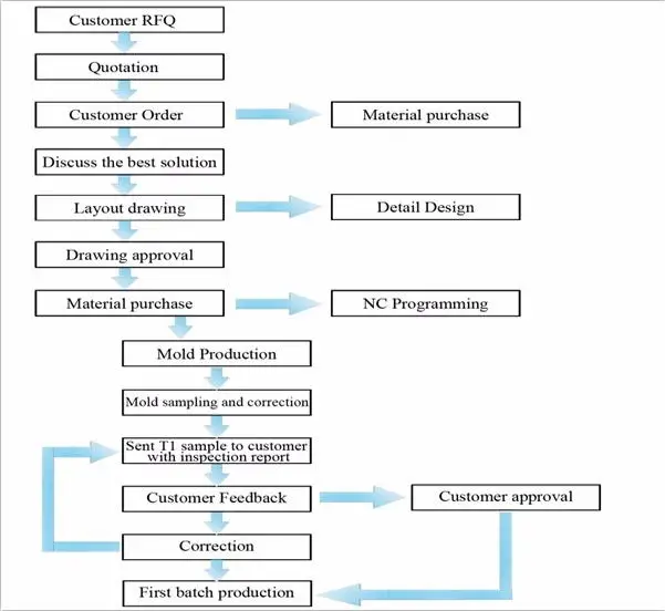A: Plastic injection mold payment : T/T 40% deposit with po, 30% after first trial shot, 30% before shipment;
