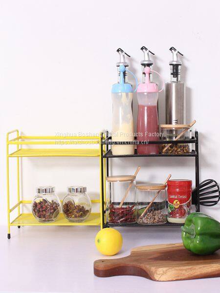 2 Tier Iron Kitchen Storage Rack, Condiment Rack for Kitchen Supplies Storage
