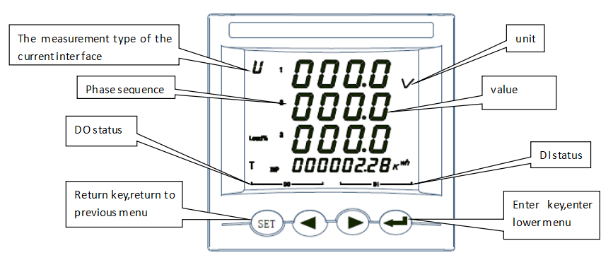 Based on different requirements, by keys on the faceplate, electric parameters for transformation ratio, alarm, communication etc. can be set up and controlled.