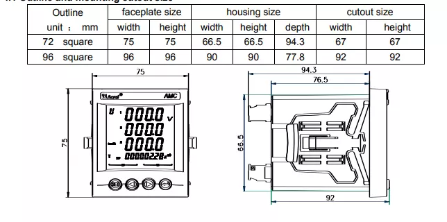 AMC series smart power monitoring meter adopts AC sampling technology, can measure many 3 phase grid electrical parameters such as current, voltage, power, electric energy etc..