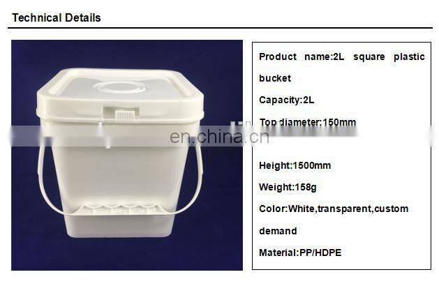 Hot Selling 2L Pp/food Grade Square Plastic Bucket Rectangular Plastic Bucket With Handle and Lid