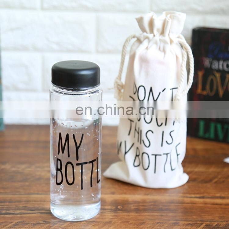Custom Logo Custom Lid Color Plastic Water Bottle Korea Style My Bottle 500 ml With Fabric Bag