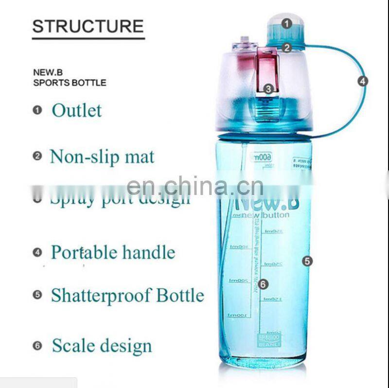 600ml Leak Proof Sports Spray Plastic Water Bottle Products With Spray Mist Plastic Drink Bottle