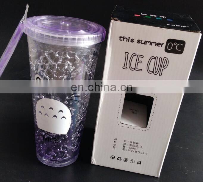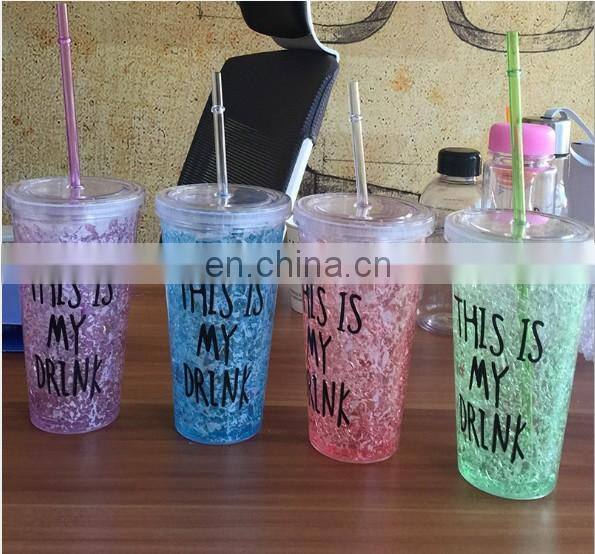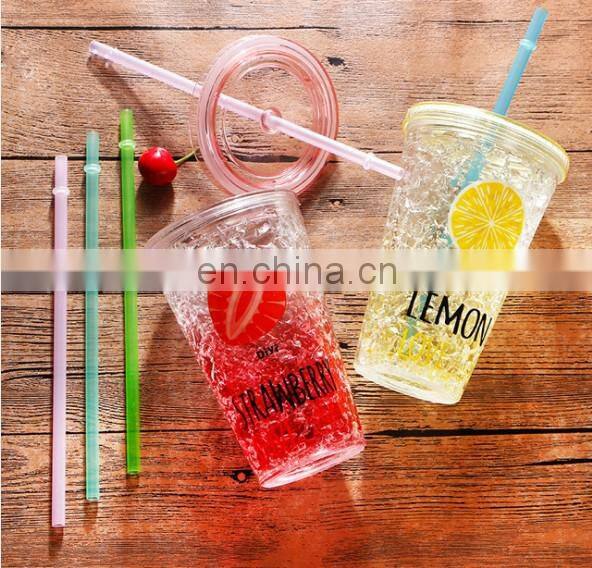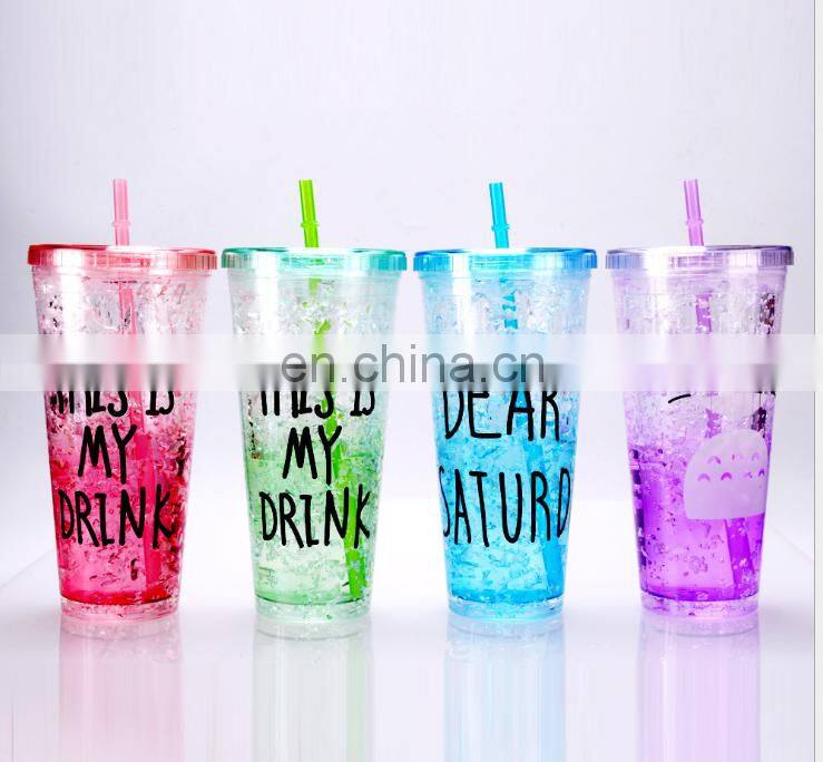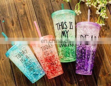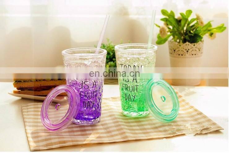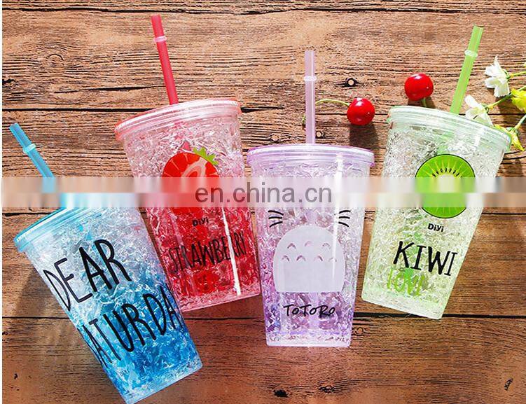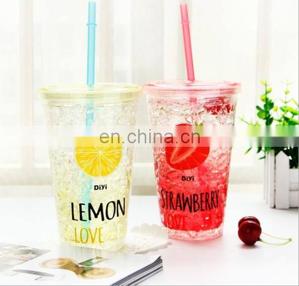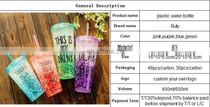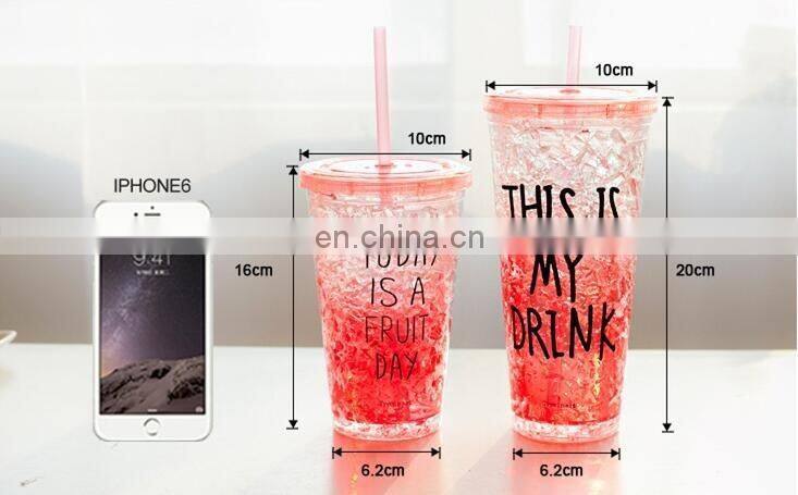 450ml 600ml Ice sport water bottle with straw double wall summer cool ice cup drink plastic straw juice mug platic water bottle