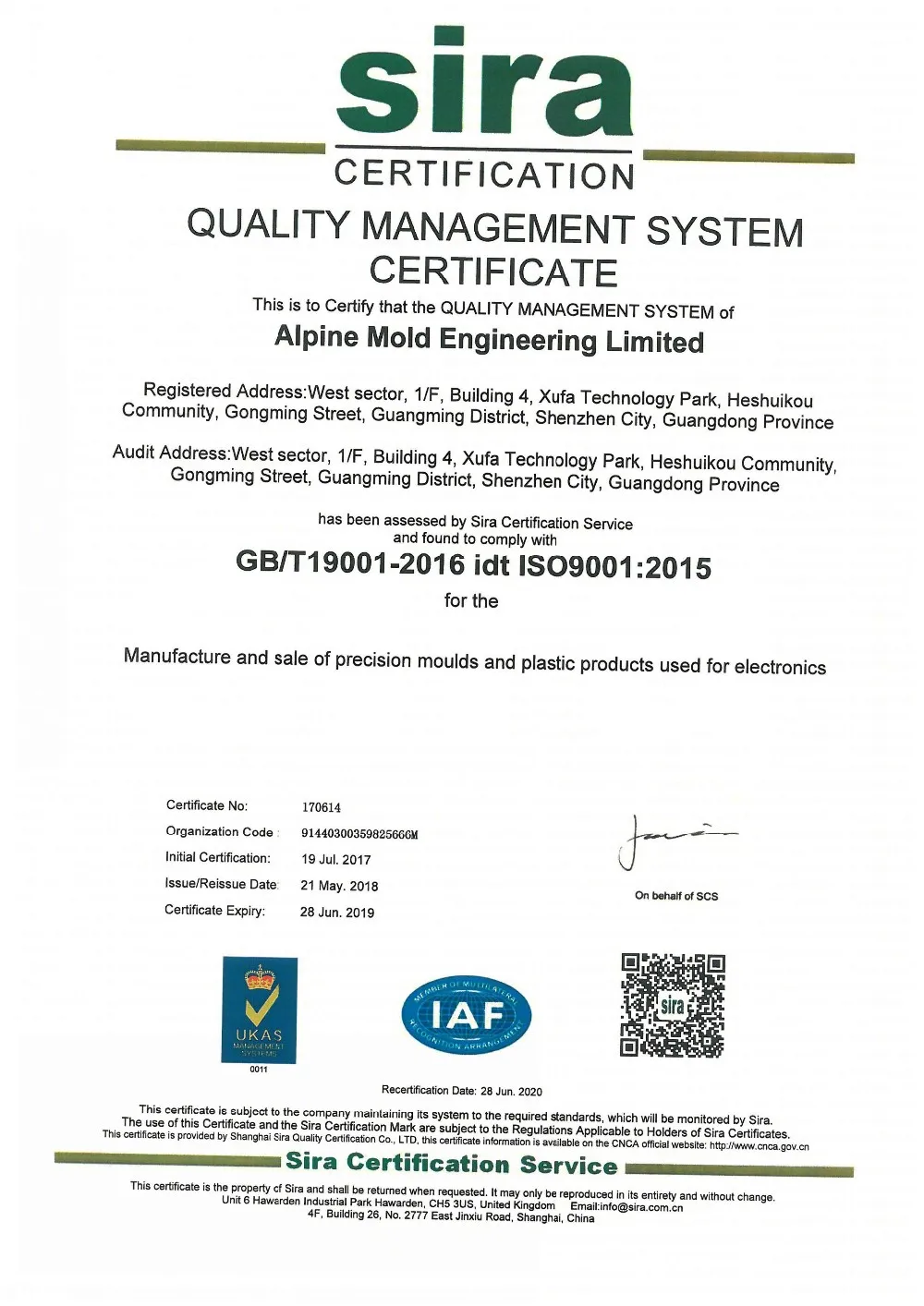 ZhongSheng mould Certifications: