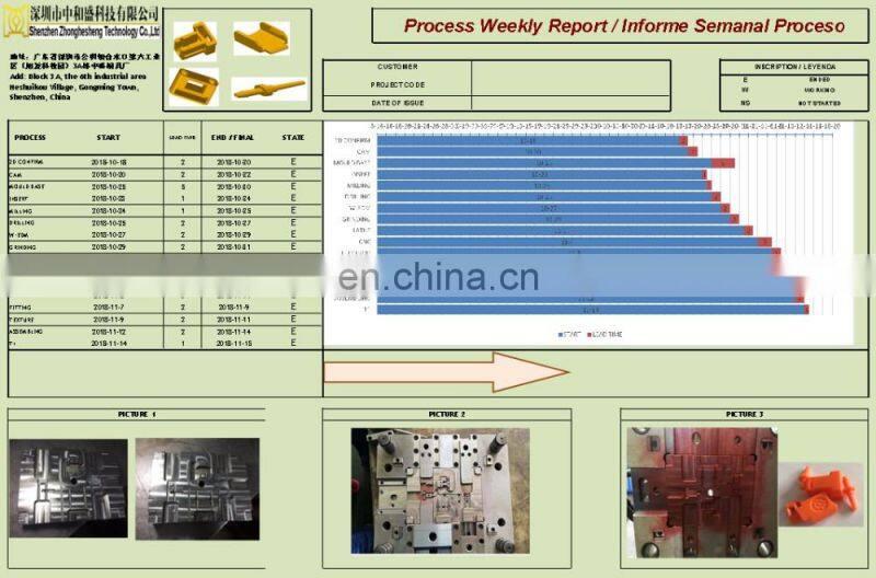 During the mold making, we will send you the weekly report each week to keep you noted about the mold progress. And make sure our quality and delivery time to avoid any delay.
