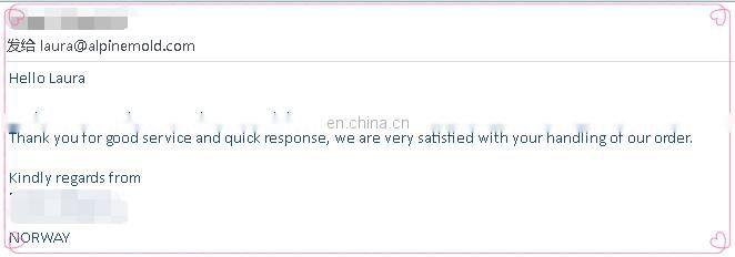 All the workers of Alpine mold is a big family, it means that "your business is also my business", when you have any need, we will do our best to help you.