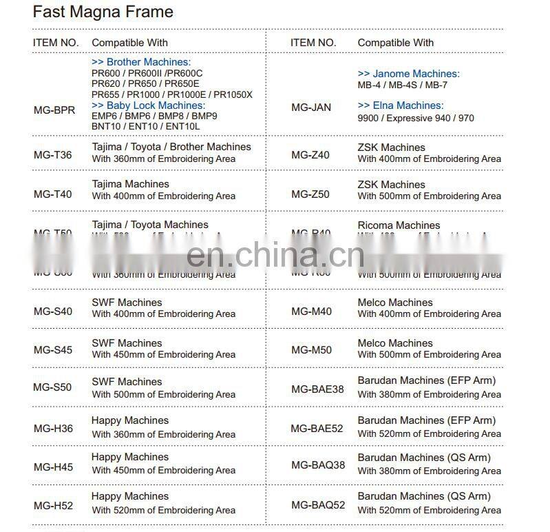 8in1 Tajima Fast Magna Frame Embroidery Hoops for Tajima 495mm Embroidery Machine