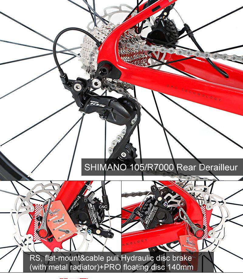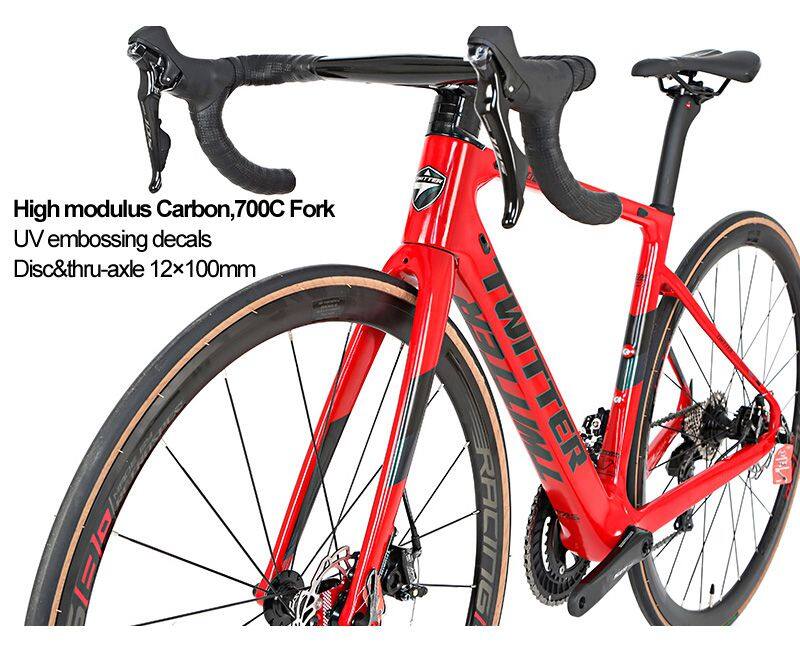 TWITTER 2021 New Arrival 700c Full Carbon Road Bike Complete Disc Brake Hidden Cables 105 Groupset 22 Speed Gravel Road Bicycle