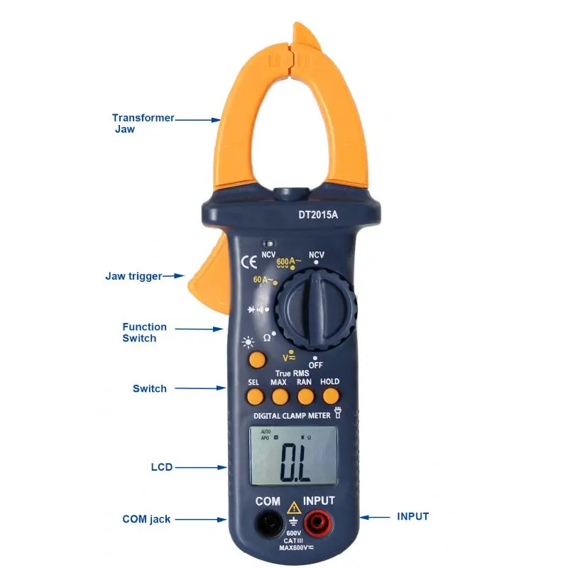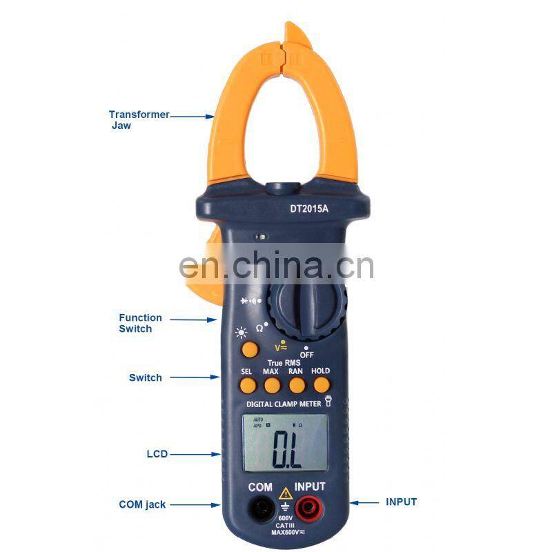 New Design DT2015A True RMS Digital Clamp Meter AC DC Current Tester LCD Display Multimeter