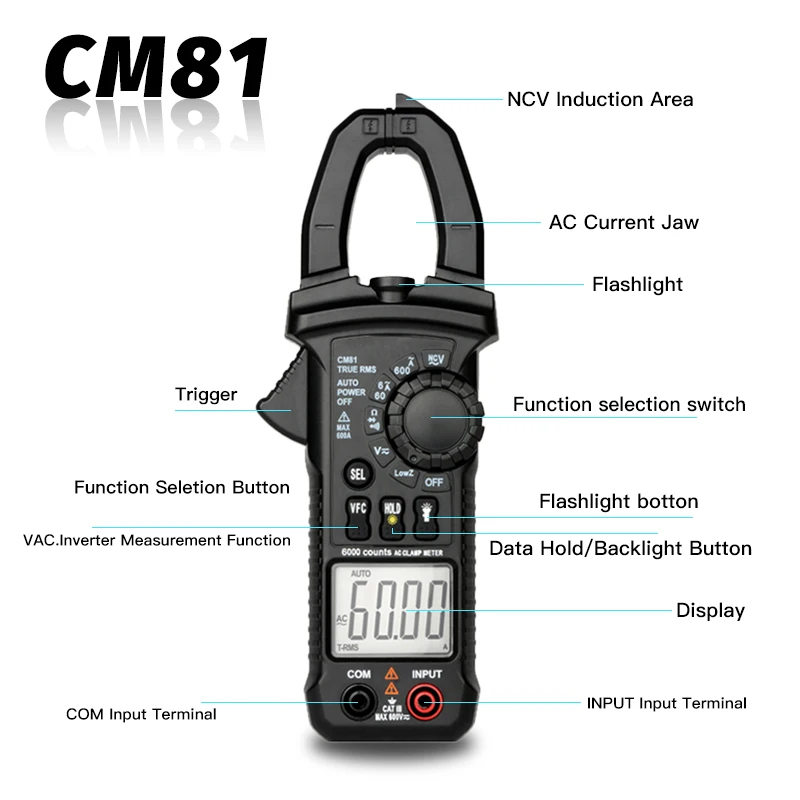 Digital Clamp Meter Multimeters AC DC Current Voltage Voltmeter Autoranging Ohm
