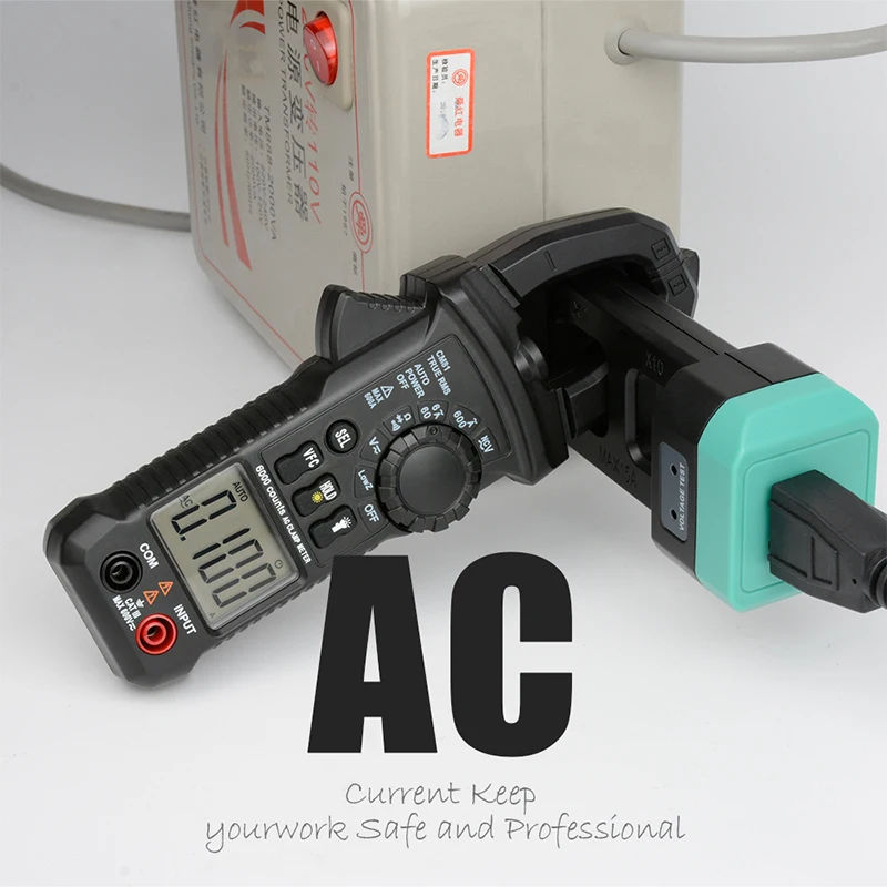 Open the jaws to test the AC current of a wire.Note that don't test several wires at the same time.