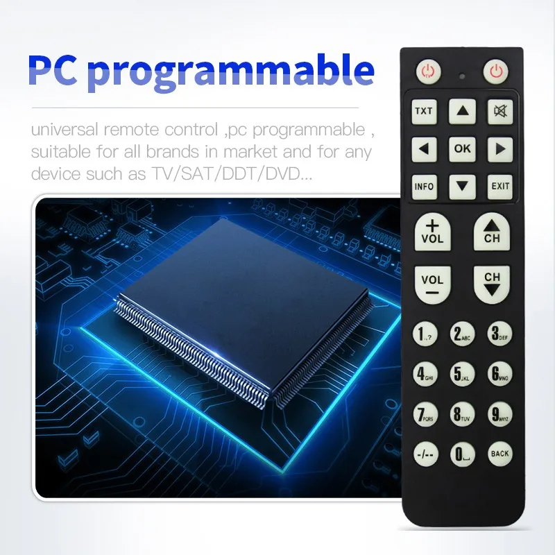 1) 1.universal remote control ,pc programmable ,suitable for all brands in market and for any device such as TV/SAT/DDT/DVD...