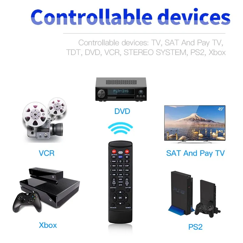 2)Controllable devices: TV, SAT And Pay TV, Tdt, DVD, VCR, STEREO SYSTEM, PS2, Xbox.