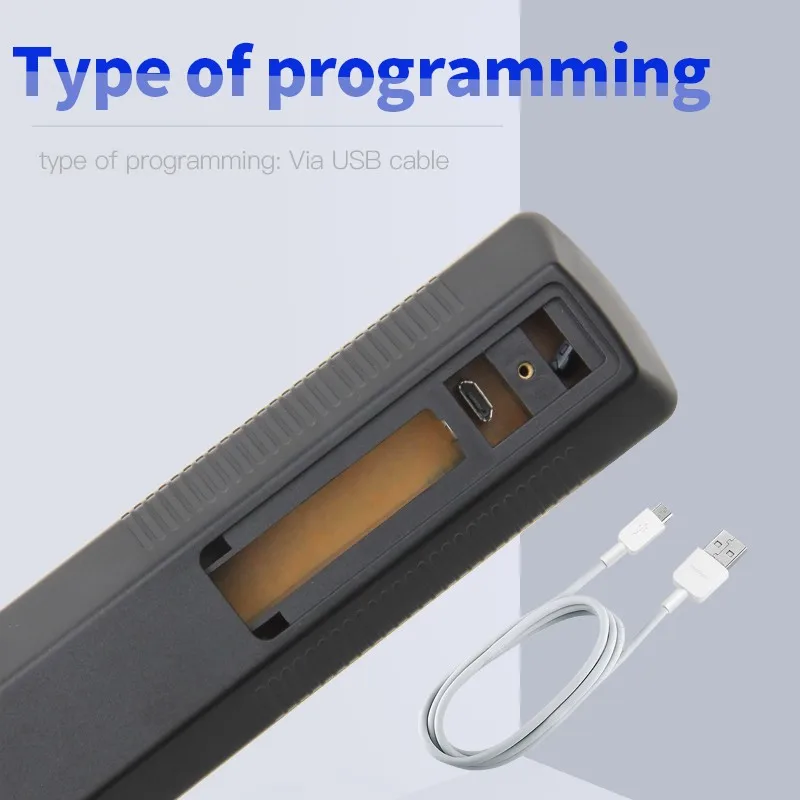3) type of programming: Via USB cable