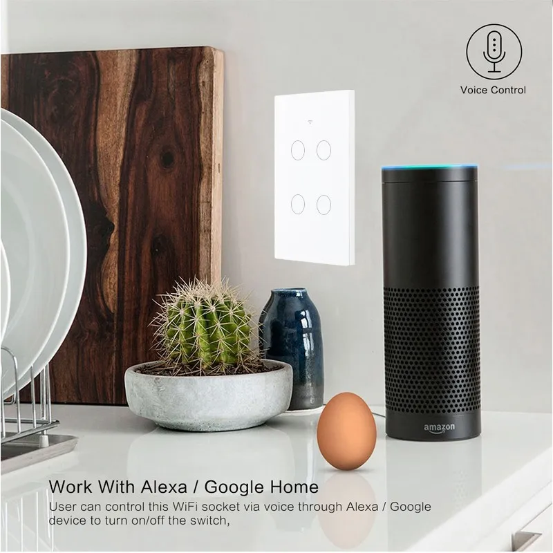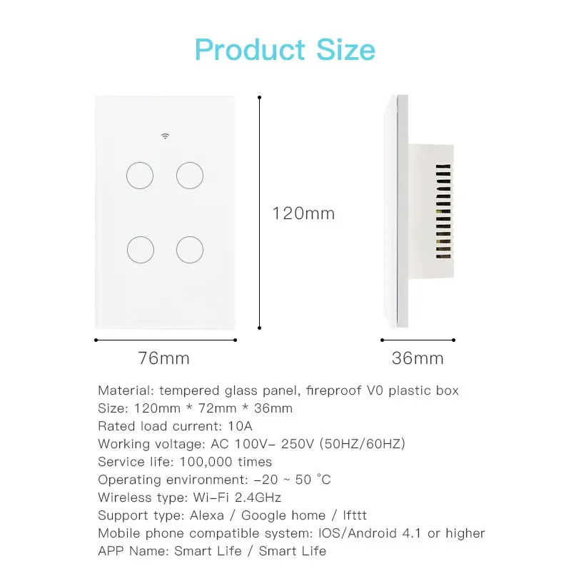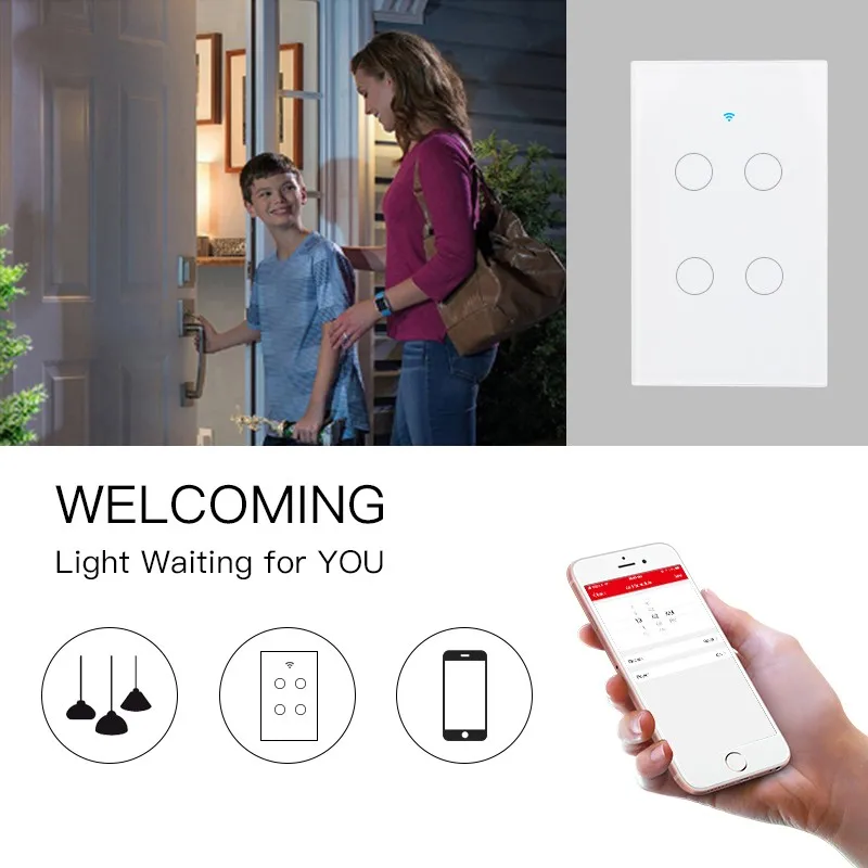 APP Remote Control 4 Gangs Touch Screen US Wifi Smart Switch