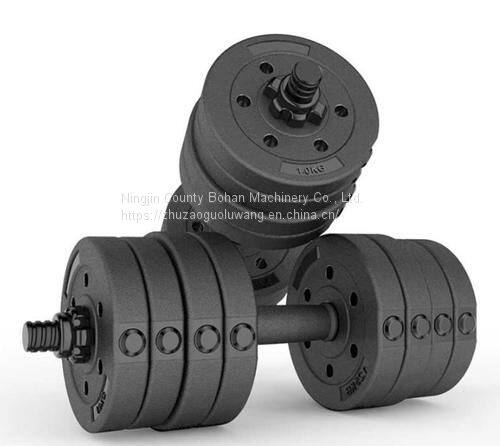 There are currently three types of active dumbbells: electroplating, spraying, and encapsulating. The total weight of each pair of dumbbells reaches 35-40 kg. The bells are available in 5 kg, 3 kg, 1.5 kg and 1 kg specifications, which can be weighted freely. Both ends of the dumbbell bar are fixed with clips, which is convenient and practical to use, but also safe and reliable. The electroplated dumbbell looks bright, exercise