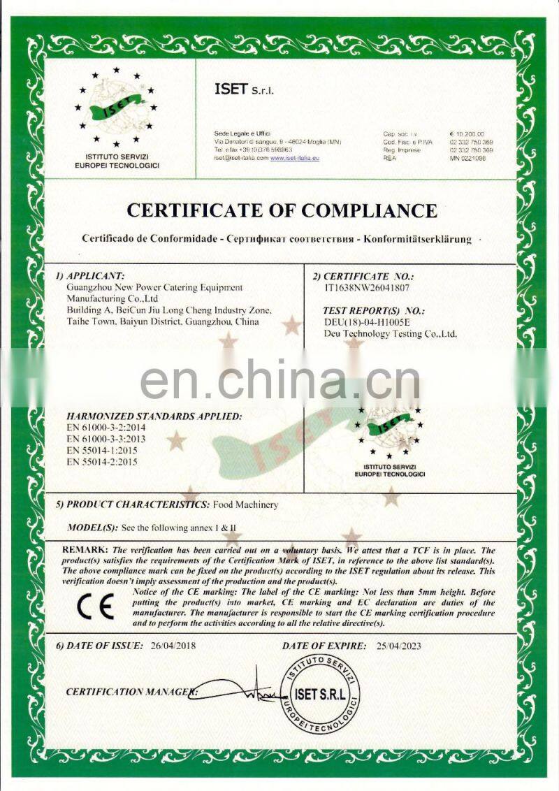 Guangzhou New Power Catering Equipment Manufacturing Co.,Ltd is one of the production in China supplying complete product lines for Kitchen Equipment.The enterprise possesses technical know-how.The R&D department consists of a team of electrical and gas engineers.We have world-class NC punching,cutting,and bending,and perfect quality inspection.There are more than 100 kinds of products and complete lines of Kitchen Equipment.All there products are sold well across the country,exported to more than 20 countries and area in Southeast Asia,Europe America and Middle East.
