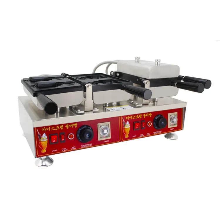 Auto Electric Digital Control Ice Cream Skin Cone Machine Street Snack Taiyaki Open Mouth Fish Waffle Maker
