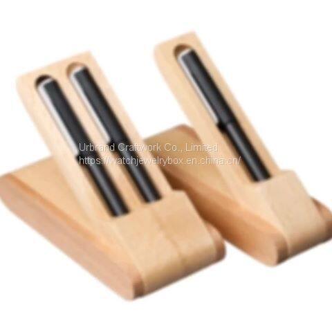 Business Style Gift Pen Packaging Bamboo Wooden Pen Box With Holder For 2 Pens