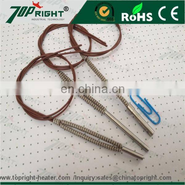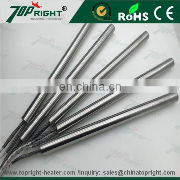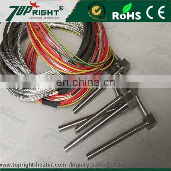 Topright Cartridge heater’s production length in 200-3000mm is mainly used for hot runner mold or, as well as other precision heating system. Spring heating ring external using high quality Ni-Cr steel tube, the internal use of high purity magnesium oxide , high temperature resistance wire, and first-class manufacturing technology . The wire is after the annealed, with flexibility can be bent into an arc or circle heating. Its high working temperature, fast heating, uniform heating precision, long service life, can be automatically controlled area, high thermal conduction, while internal heating material damage, external can reuse.