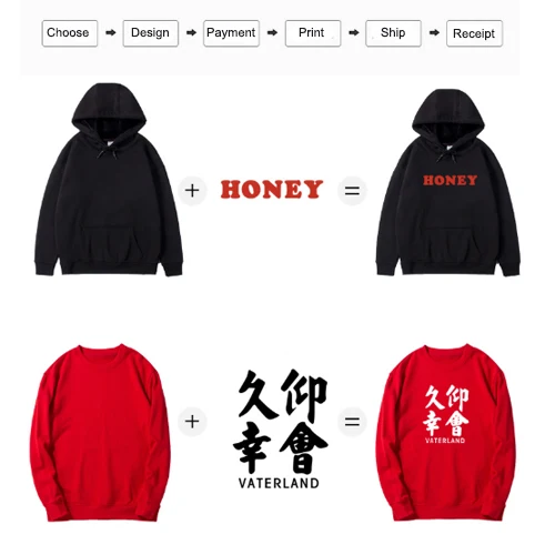 *Design: Solid Color, Long Sleeve, Loose fit, Side Pockets ,Custom print