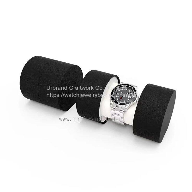 High-quality cylindrical watch box, single watch box, leather watch ring box, roll watch box