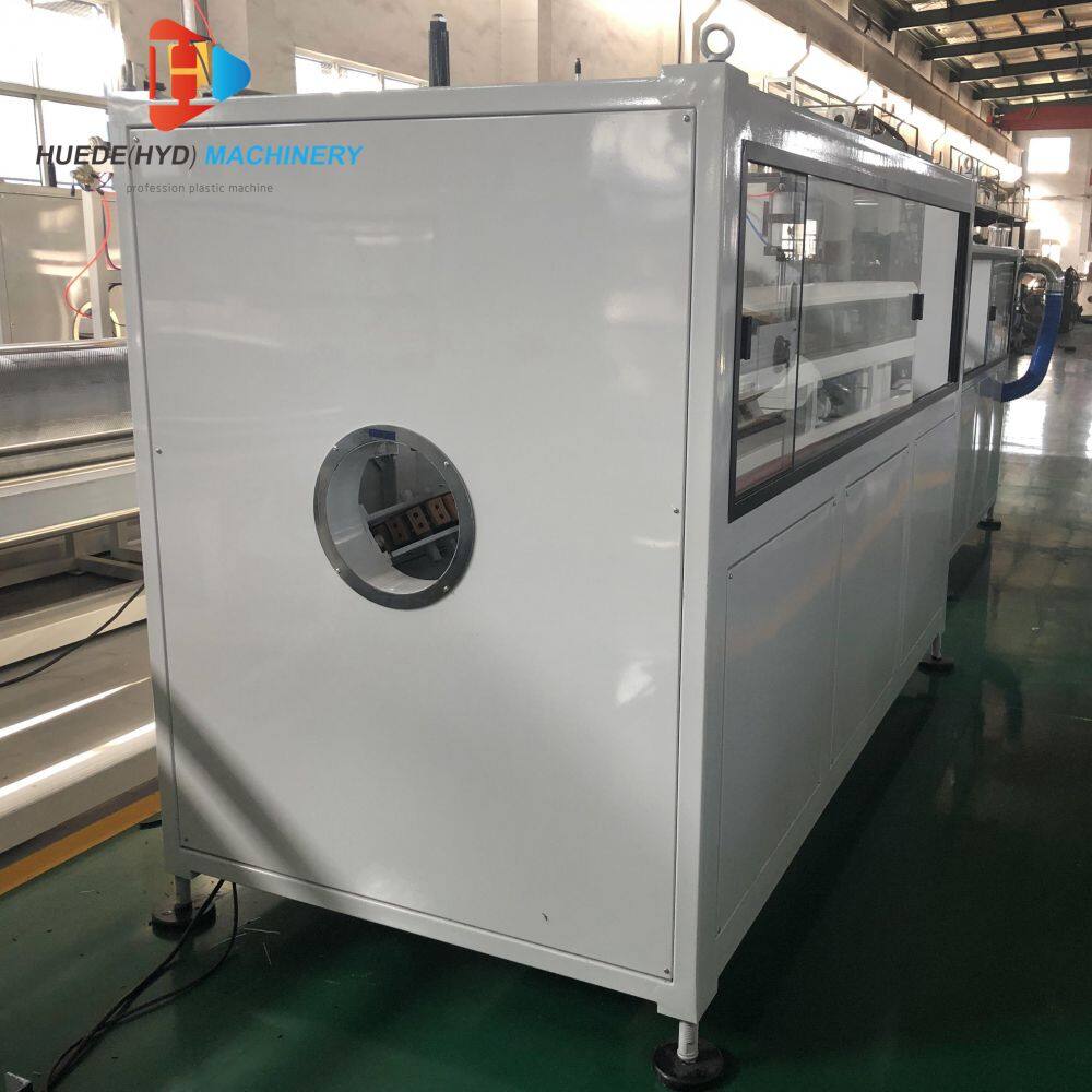 2.This pvc pipe extrusion line is composed of the conical twin-screw extruder, vacuum calibration tank, printer, haul-off, cutter, stacker, etc.