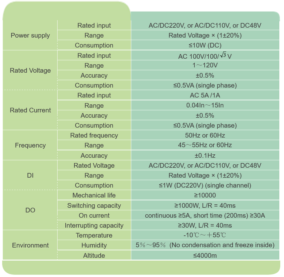 ● Auxiliary power supply adapts with AC220V, DC220V, DC110V, AC110V;