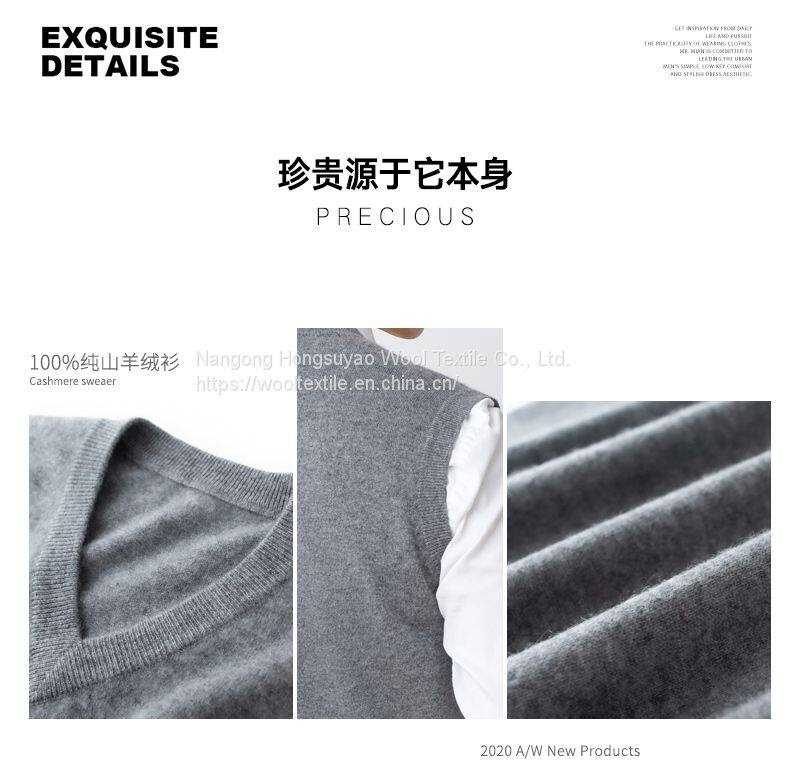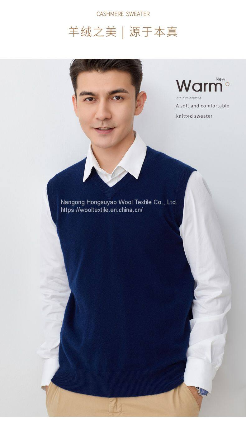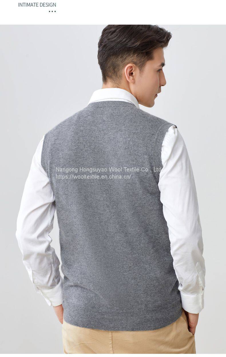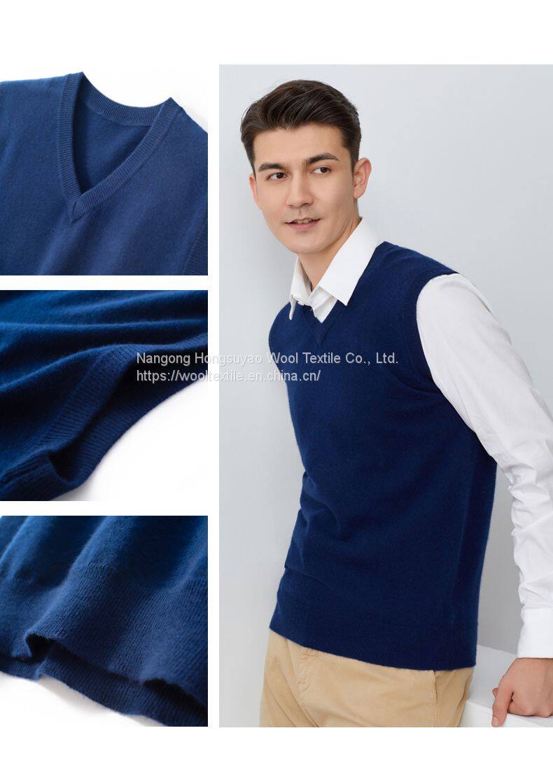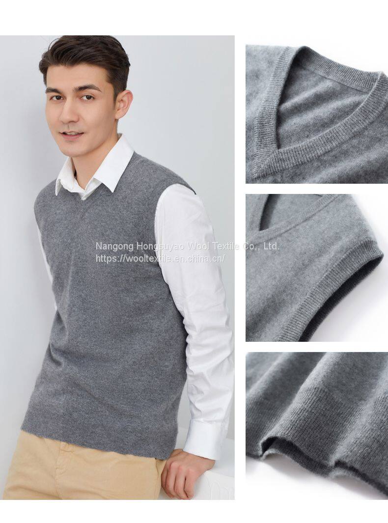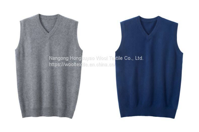 Home > Products > Cashmere Sweater > Men's Wool Cashmere Solid V-Neck Sleeveless Pullover Sweater Sale