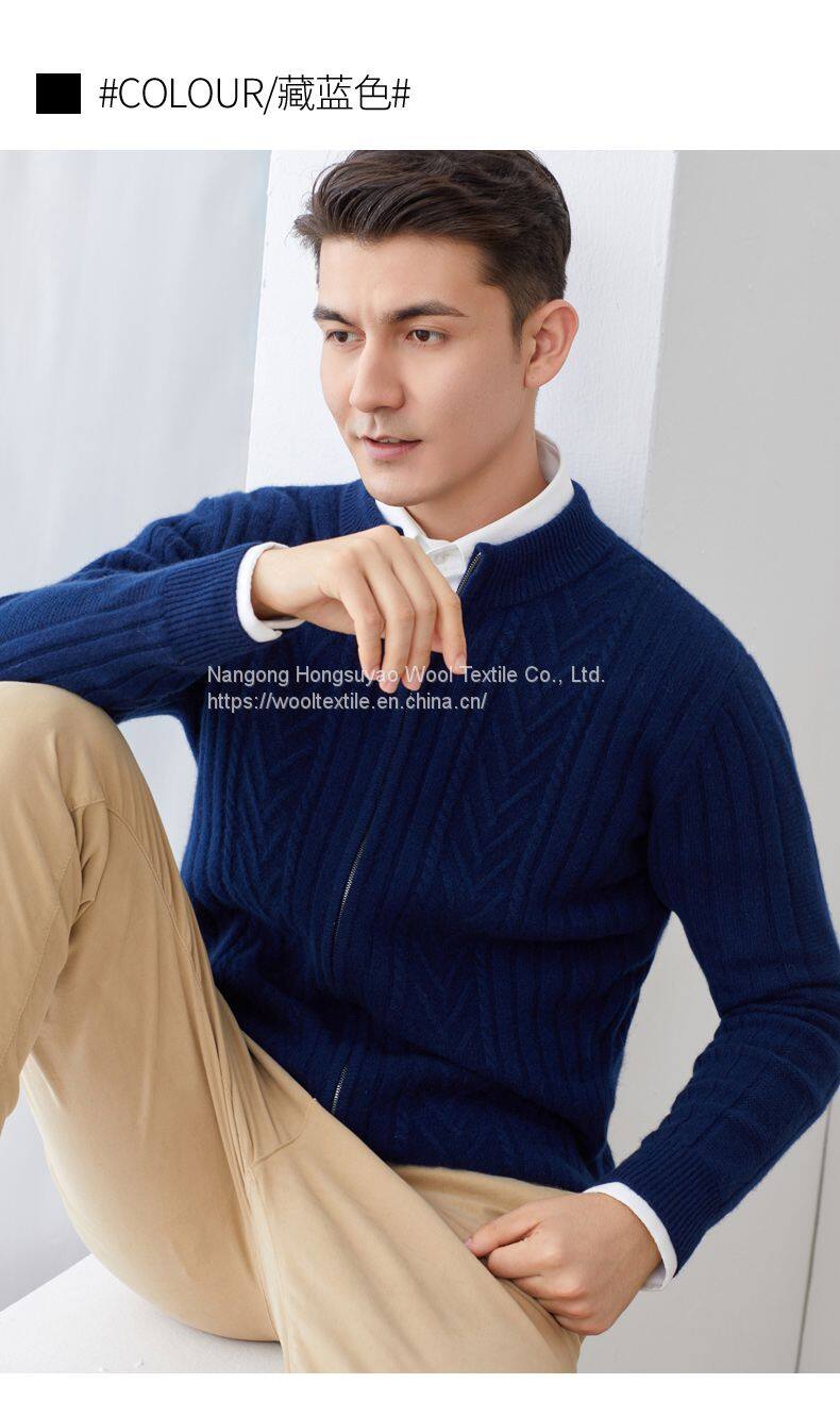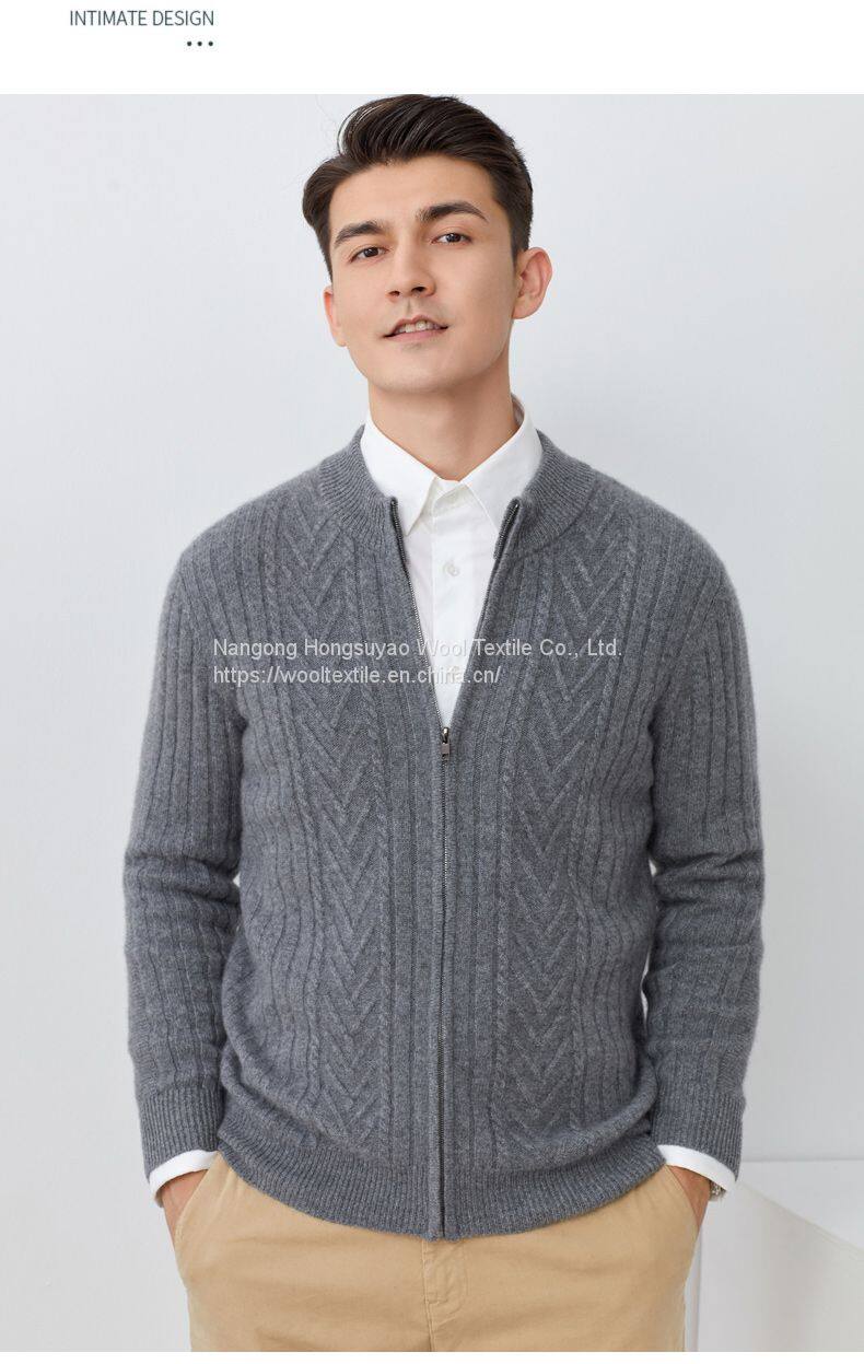 Autumn /Winter Pure Color Casual Cashmere Cardigan Men's Pure Cashmere Zipper Sweater