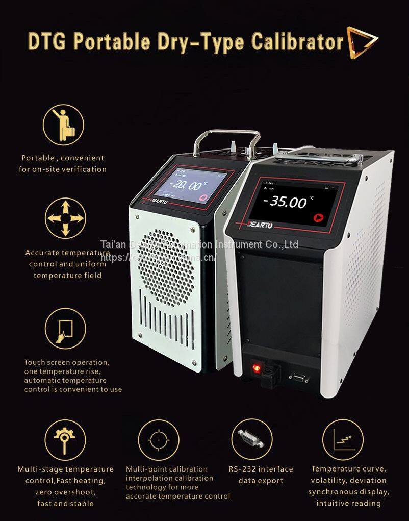 DTG low temperature portable intelligent dry well furnace, simple operation, light and portable, accurate temperature control,suitable for laboratory and industrial site temperature calibration / measurement; its calibration temperature range can be from -42 ℃ to 150 ℃, the average temperature block uses high thermal conductivity Rate alloy material to ensure uniform and stable internal temperature field. The technology of temperature control accuracy, horizontal temperature field, vertical temperature field, stability, load performance and hysteresis are all at the domestic advanced level. Widely used in machinery,shipbuilding,chemical industry, food, electricity, medicine and other industries.