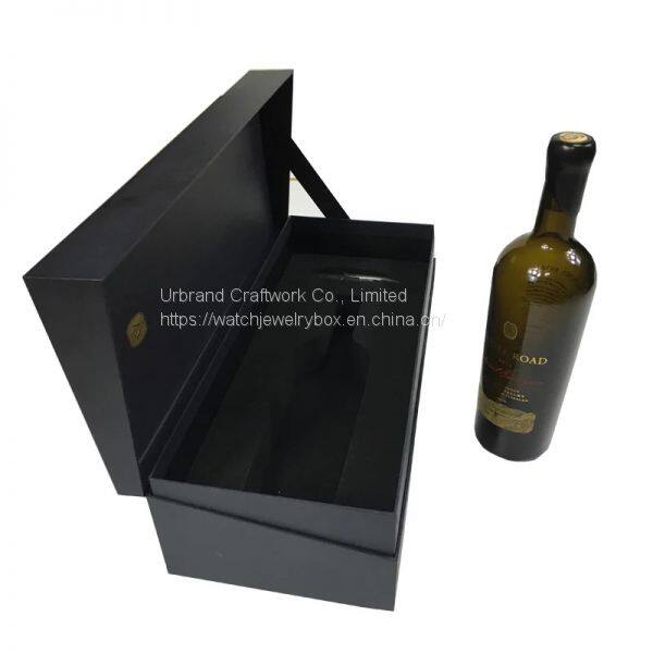 Luxury Black Gift Box Custom Gold Logo Cardboard Paper Wine Gift Box for Single Wine Box Packaging