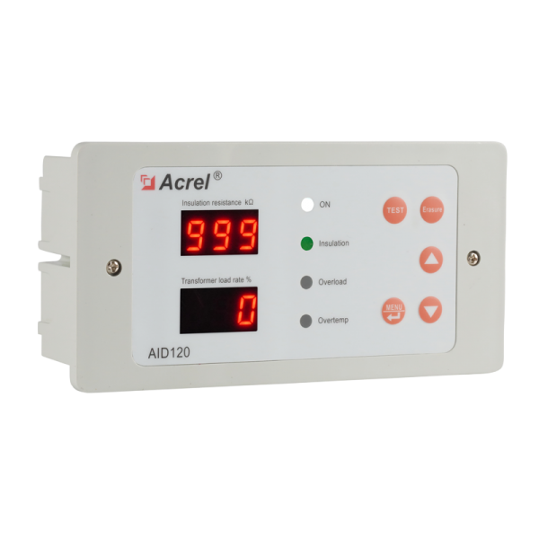 * Functions of real-time monitoring and fault alarming of the ground insulation resistance, transformer load current and transformer winding temperature of the monitored IT system;