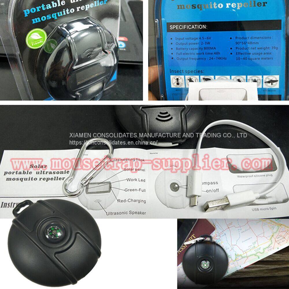Portable Outdoor Ultrasonic Pest Repeller Solar Power Mosquito Repellent Control for Spider, Ants and Cockroach with Compass