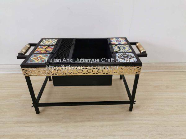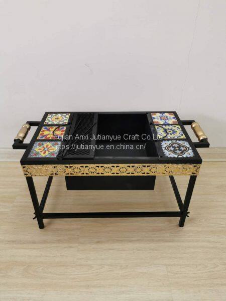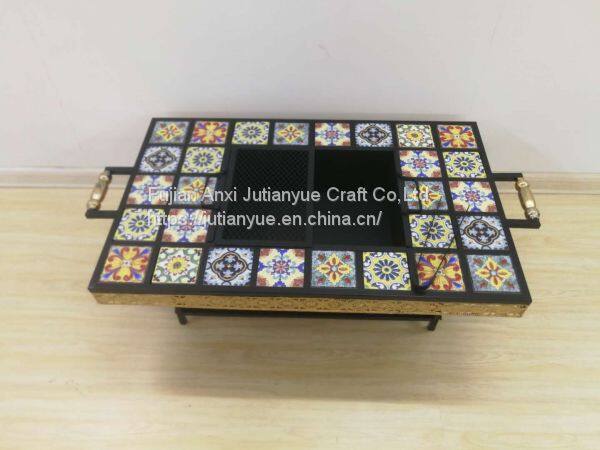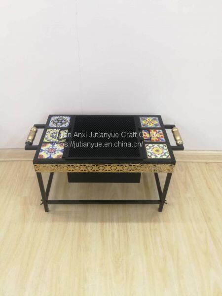 Ceramic Tile Mosaic Parquet Outdoor Rectangular Fire Pit Table