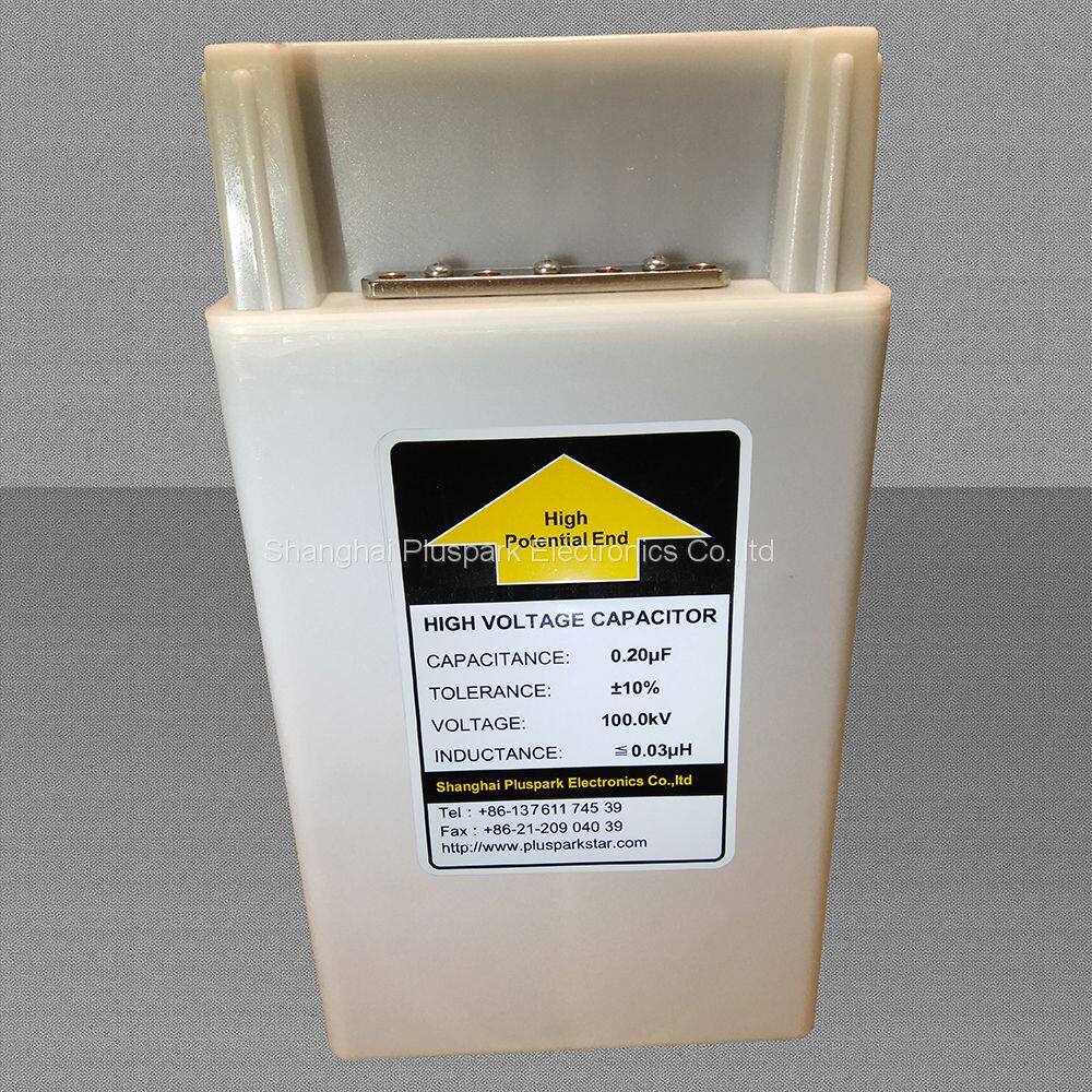 ISO9001:2015 Certified high voltage capacitor manufacturer & Supplier Shanghai Pluspark Electronics Co.,ltd , offer the high voltage pulse capacitor 0.2µF 100kV item ,( 200nF /100000VDC ),Low inductance , with repeatitive-rate : 1Hz for pulse power supply , marx generator application .