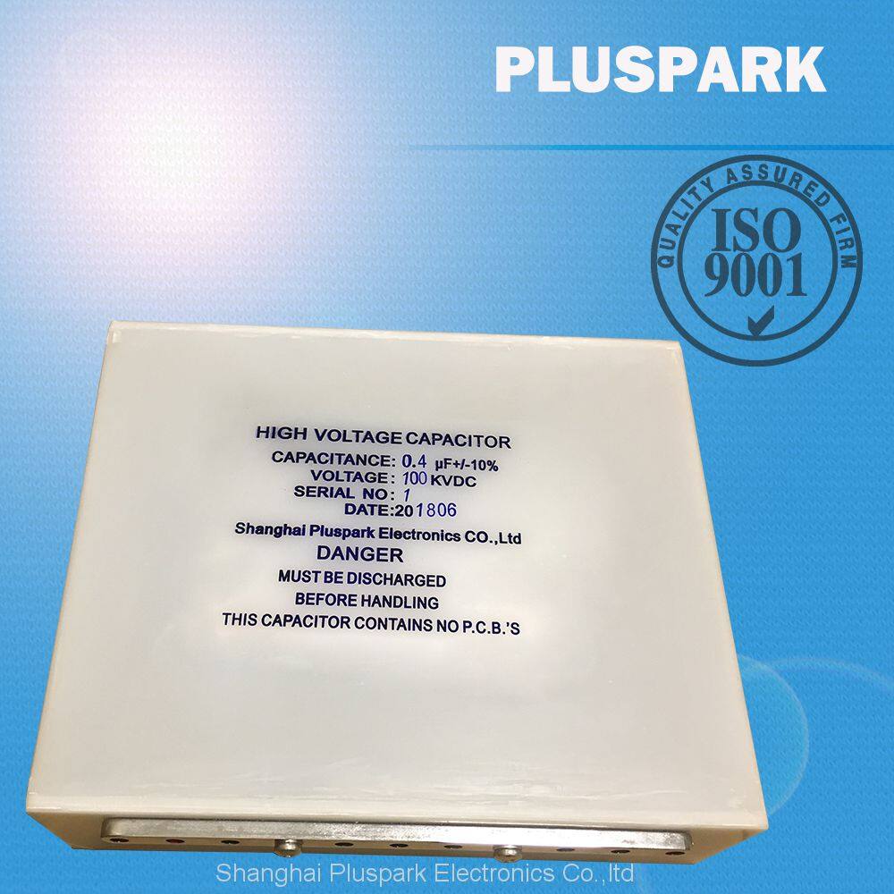 ISO9001:2015 Certified high voltage capacitor manufacturer & Supplier Shanghai Pluspark Electronics Co.,ltd , offer the high voltage pulse capacitor 0.4µF 100kV item ,( 400nF /100000VDC ),Low inductance , with repeatitive-rate : 1Hz for pulse power supply , marx generator application .