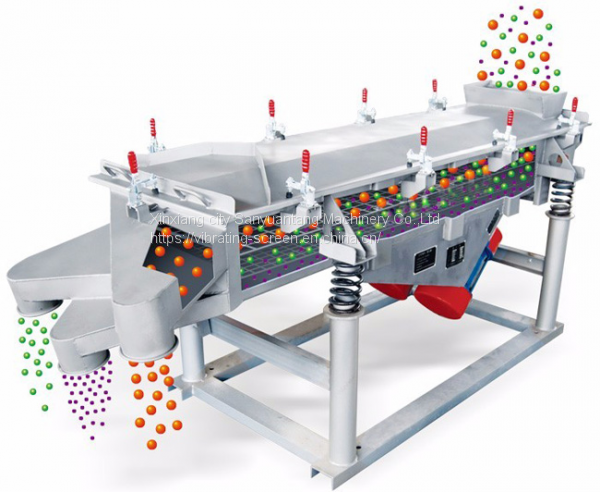 SY series linear vibration sieve is used as a source of vibration excitation by vibrating motor, so that the sieve material being thrown up and forward for linear motion ,in order to match reasonable sieve.There are several balls on the bottom of screen frame hit each other when vibrating, which can clear screen and avoid blocking effectively .