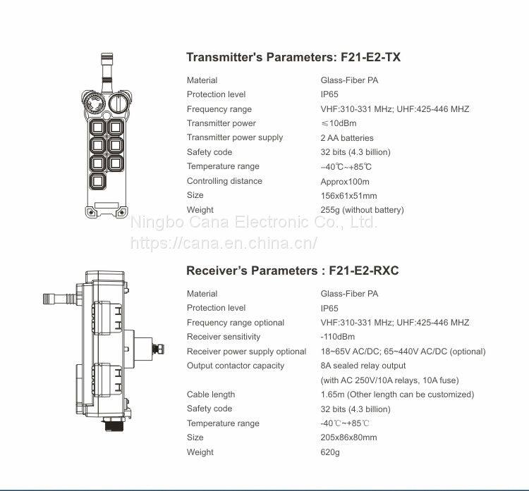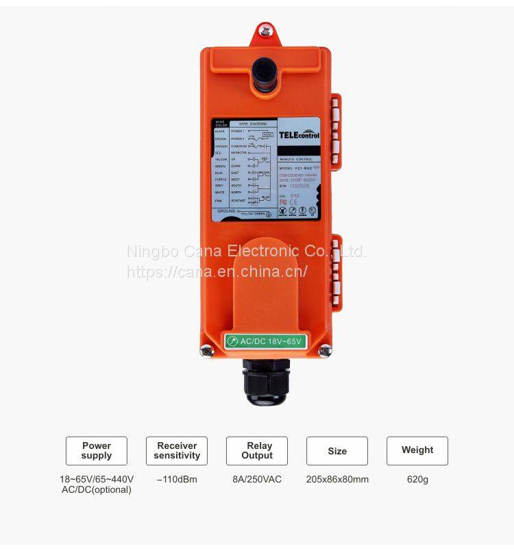 Universal Telecontrol F21-E2 Industrial Radio Wireless Remote Control AC/DC for Crane 1 Transmitter 1 Receiver