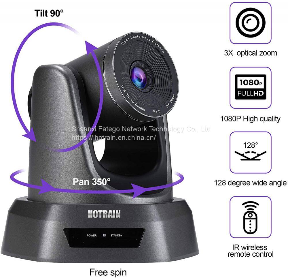 Hotrain FXN3X 3X Zoom USB 1/2.7” 2.1MP Full HD Color Video Conference Camera for Live Streaming, Online Education, Meeting