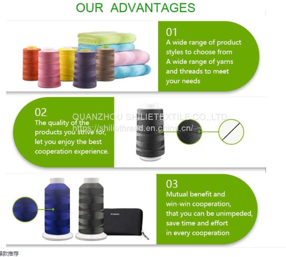 Quanzhou Shilie Textile Co.,Ltd (Its predecessor is Quanzhou Sanli Yarn& Belt Weaving Co., Ltd., founded in 2000.),which deep tillage in the sewing thread and polyester dyed yarn industry for 20 years.(Manufactering and sale all kinds of products,including:thread,yarn,rigid tape,cord,velcro, elastic,interlining,woven collar,zipper,reflective products,etc.