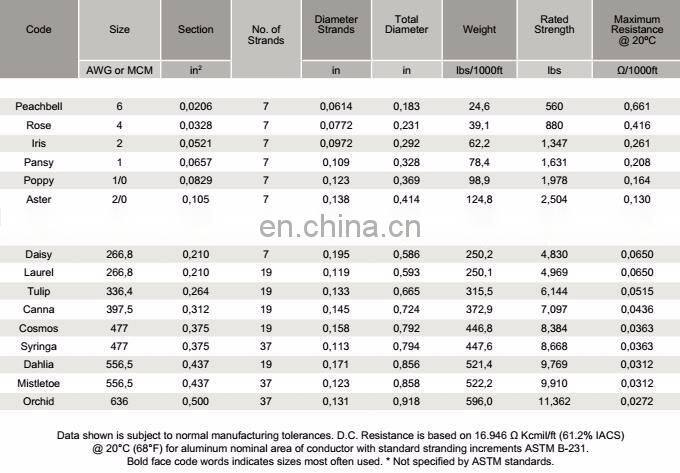 We can supply this conductor according to different recognized standards, such as IEC61089, BS215, ASTM B231, CSA C49, DIN480201, JIS C3109, customer special specification also can be satisfied.