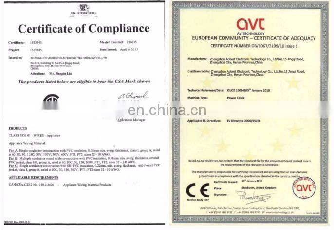 A: -Our cables have been supplied to many countries and regions, such as, Singapore, Taiwan, Hong Kong, Kenya, Congo, France, Cyprus, Honduras, etc.
