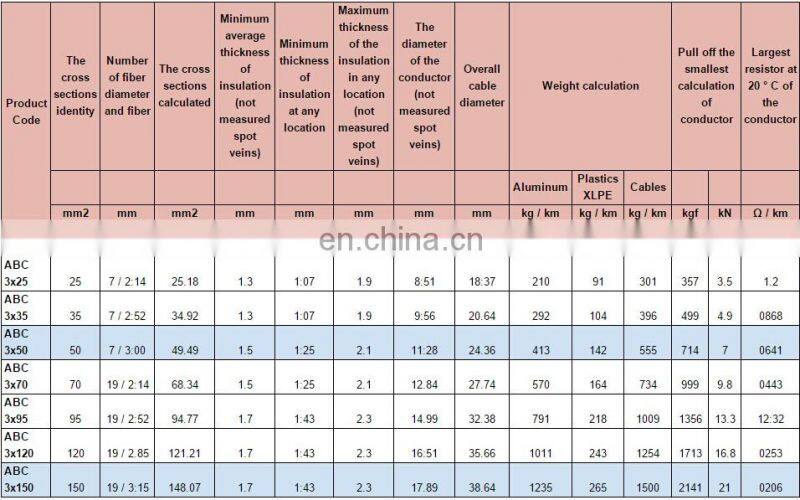 aluminum conductor ABC cable 16mm 25mm 35mm 50mm 70mm 95mm 120mm 150mm