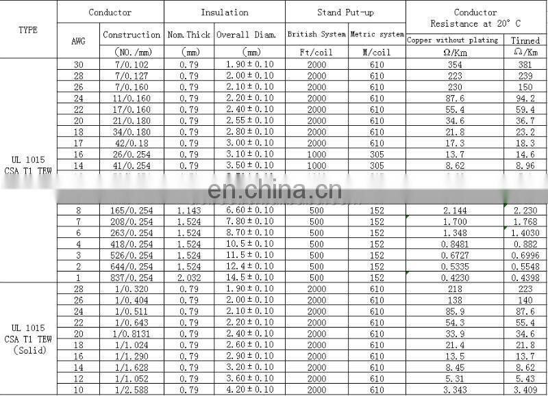UL1015/AWM 1015 hook up wire 16awg PVC insulated electric wire